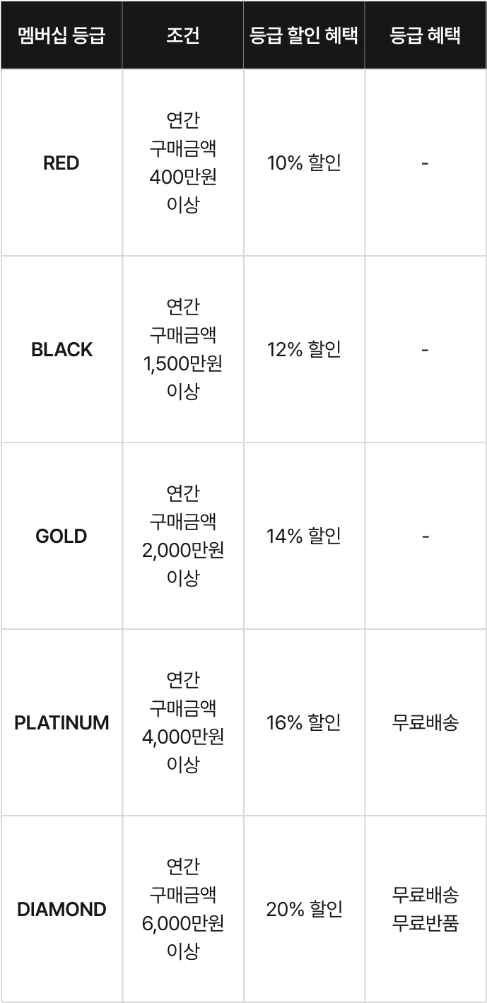 할인율은 새제품 제작 기준으로 적용 (아울렛 제품은 기준 미 적용)